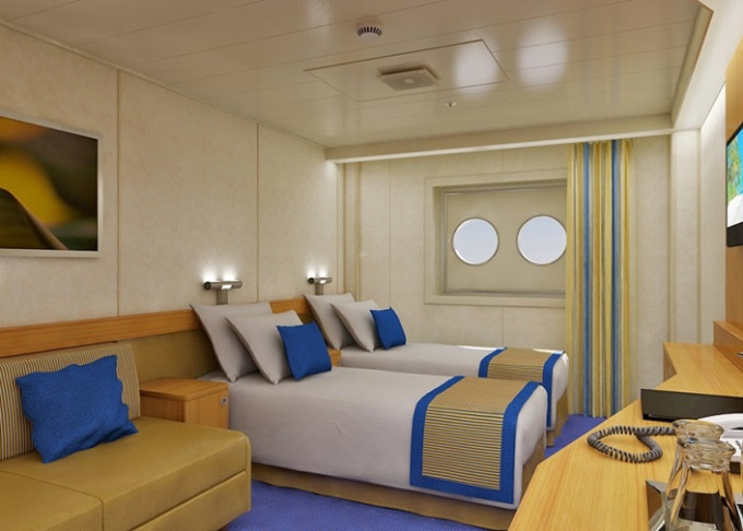 | 4J - Vnútorná kajuta s oknom / obmedzený výhľad od 17 m². Neotvárateľné okno / obmedzený výhľad. 3,6,7. paluba. | 980 € 490 € za osobu |