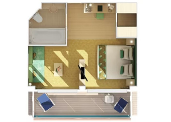 | 8T - Kajuta s balkónom Cloud 9 Spa 17 m² + balkón 3 m². 11,12. paluba vpredu. Voľný vstup do Spa a balíček Cloud 9 Spa. | 2 066 € 1 033 € za osobu |
