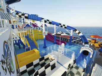 - Využívanie fitness centra, sauny, bežeckej dráhy, bazénov, víriviek, tobogánov a vodného parku (na vybraných lodiach), mini golf, basketbal, volejbal, stolný tenis, knižnica