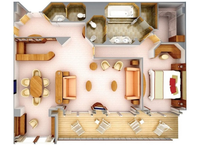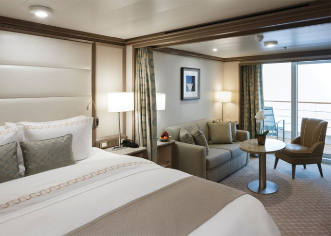 | R1 - Royal Suite 1 92 m² (vrátane balkóna 12 m²), Spálňa s obývacou a jedálenskou časťou. 7. paluba vpredu. Max 3 osoby. | 28 200 € 9 400 € za osobu |