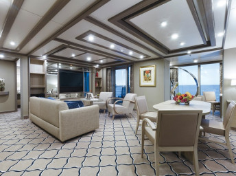 | R2 - Royal Suite 2 127 m² (vrátane 18 m² balkónov). Royal Suite prepojená s Veranda Suite. 7. paluba vpredu. Max 5 osôb. | 28 400 € 28 400 € za osobu |