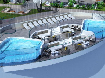| SS - Sky Suite Sunset 21 m² + balkón 15 m². 7. až 12. paluba na korme. Vírivka. Max 2 osoby. Výhody Sky Suite. | 8 043 € 2 681 € za osobu |