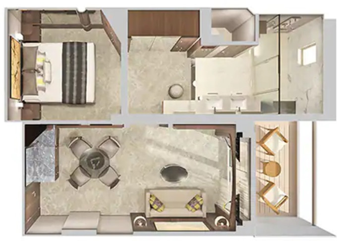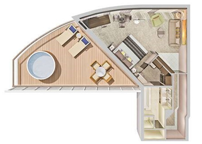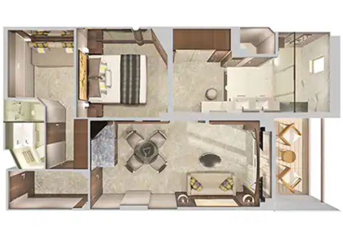 | M1 - Club Suite Aft-facing 25-39 m² / balkón 5-7 m². 11. paluba - vpredu. Max 4 osoby. Výhody Club. | 4 724 € 2 362 € za osobu | ||