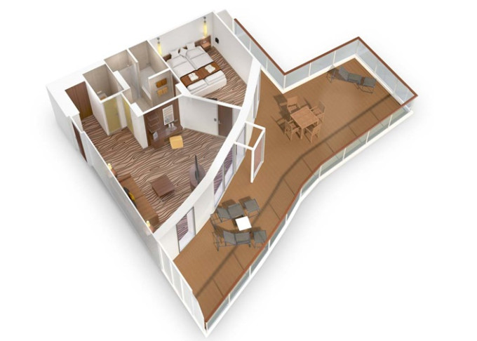| SA - Suite Deluxe PREMIUM 43 m² / 72 m² balkón. 12. paluba. Max 4 osoby. Cenový model Premium + výhody Suite. | 17 820 € 8 910 € za osobu |