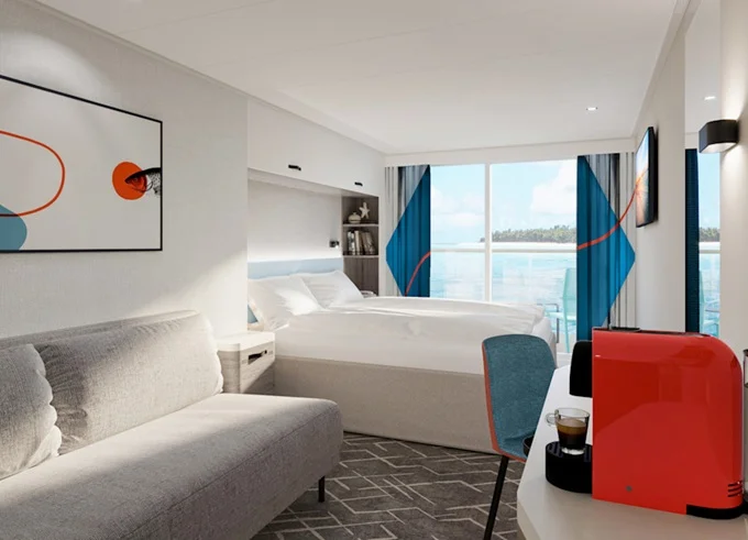 SKAO - Schöne Aussicht Suite 39 m² + balkón 10-12 m² s ležadlami a hojdacou sieťou. 7-14. paluba. Max 4 osoby. Výhody Suite. 10 098 € 5 049 € za osobu