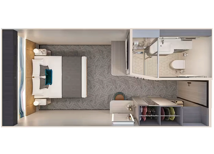 HE - The Haven Penthouse s balkónom 27 m² / balkón 8-13 m². 12. - 15, 17. paluba vzadu. Max 3 osoby. Výhody The Haven. 9 648 € 4 824 € za osobu